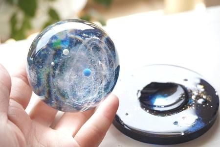 オルゴナイト☆ギャラクシー球体 専用台座付き ラピスラズリ・麻炭入り