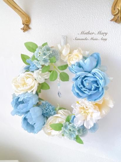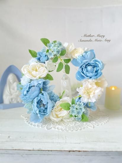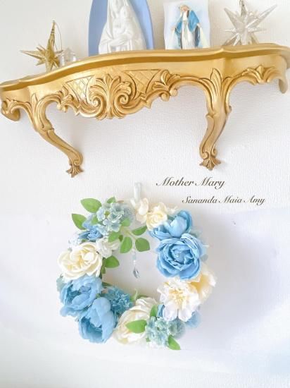 【聖母マリア祈りのリース】奇跡のメダイ付き マリアブルー アンティークカラー